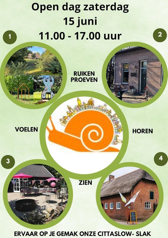 Ervaar zaterdag 15 juni op je gemak de Cittaslow Slak bij vier van onze Cittaslow supporters!