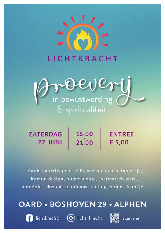 Tijdens deze Proeverij kun je dit gaan ont-dekken. Deze dag is bedoeld voor mensen die hun bewustwording willen vergroten, zichzelf willen verdiepen en ervaren dat er meer is tussen hemel en aarde.