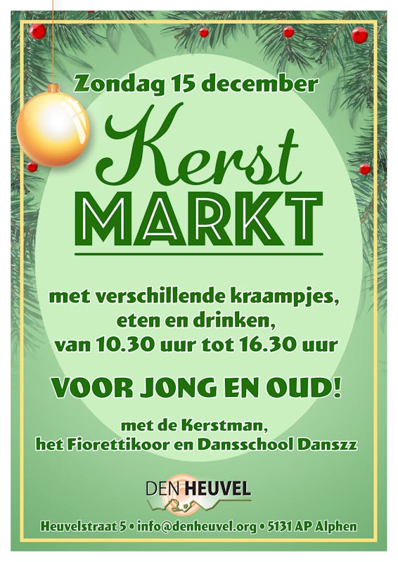 Op 15 december aanstaande organiseren we met de activiteitencommissie van C.C. Den Heuvel de Kerstmarkt. Een gezellige markt met leuke optredens en allerlei verschillende kramen. De kerstman is aanwezig en de kinderen kunnen heerlijk knutselen. Komen jullie ook?