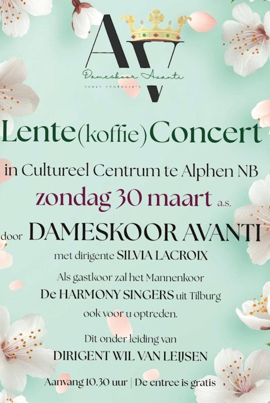 Lente koffieconcert door Dameskoor Avanti met als gastkoor De Harmony Singers uit Tilburg.