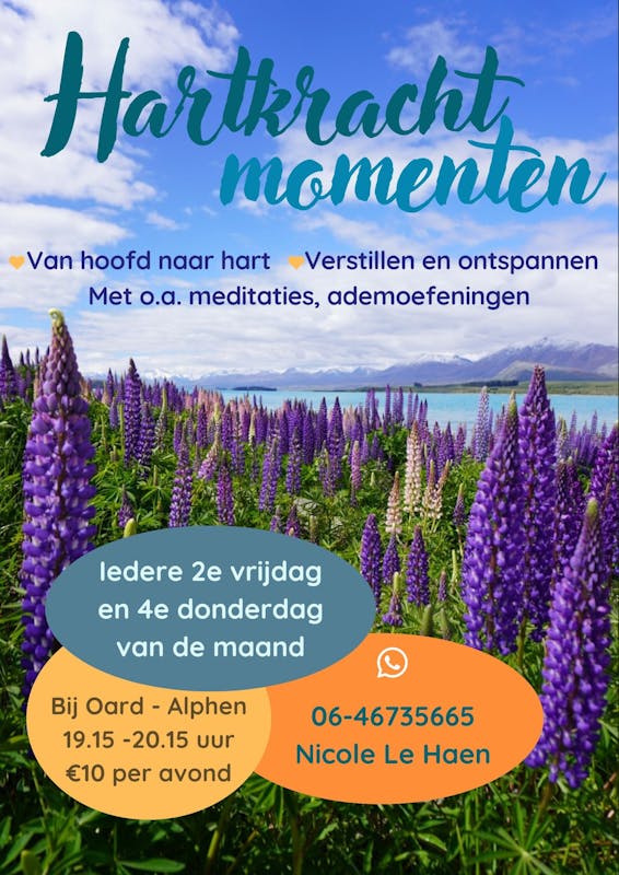 Van hoofd naar hart, verstillen en ontspannen met o.a. geleide meditaties en adem- en lichaamsoefeningen. Even uit de waan van de dag, vertragen en in rust komen. Van druk hoofd naar kloppend hart.