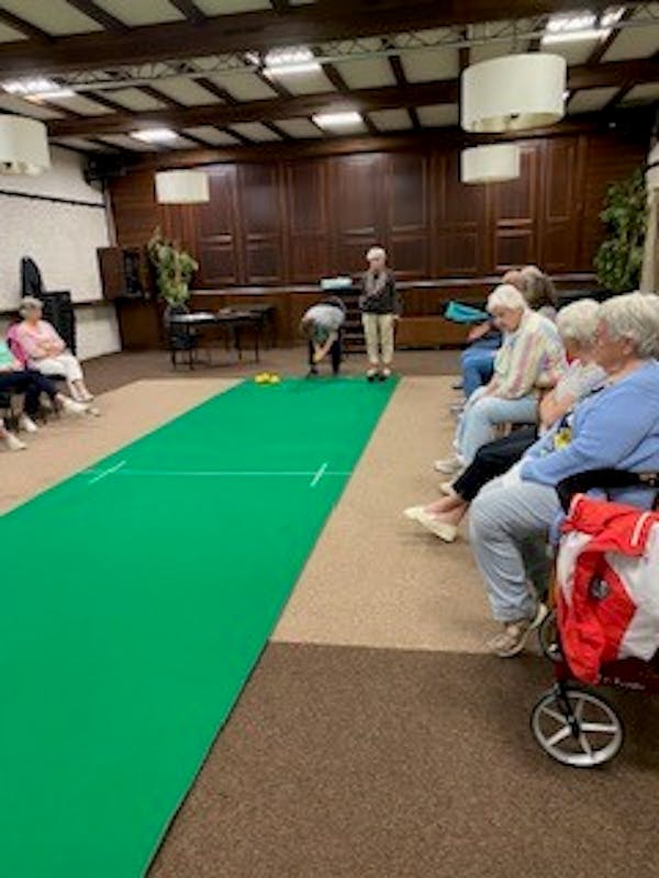 Koersbal is een spel dat binnen wordt gespeeld op een mat van 8 bij 2 meter. Er spelen twee personen tegen elkaar De ene persoon heeft 4 zwarte en de andere 4 gele ballen. De bedoeling is de koersbal (gele of zwarte bal) zo dicht mogelijk bij de jack (kleine witte bal) te rollen. Deze sportieve uitdaging gaan wij iedere week aan met een thee- of koffiepauze om bij te kletsen en na afloop met een drankje. Kom eens langs misschien is het iets voor u.
