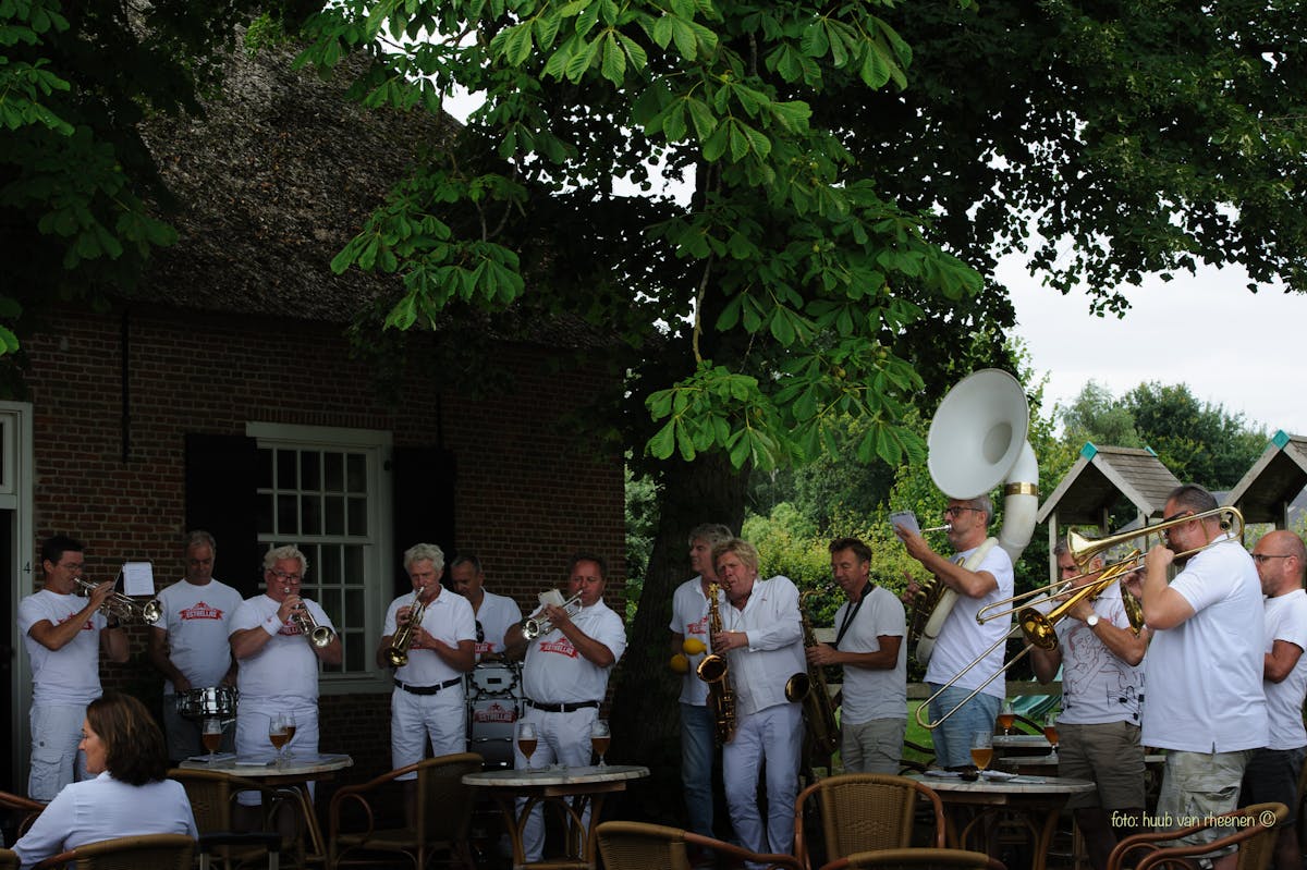 Terrasoptreden van de Estrellas, de Bredase brass-band met stevige en dansbare covers van rock- & popnummers.