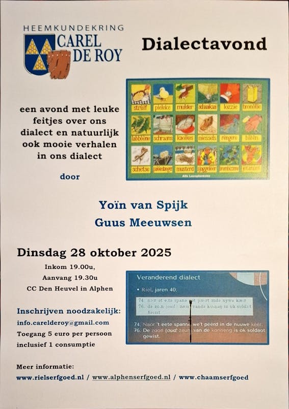 Dialectavond in CC Den Heuvel. Lees meer op onze website via deze link.