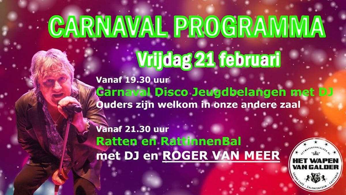 Carnavalsbal Jeugdbelangen. De andere zaal is open voor de ouders.