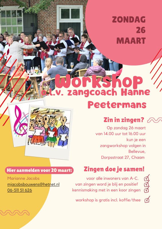ZONDAG 26 MAART WORKSHOP o.l.v. ZANGCOACH, HANNE PEETERMANS.