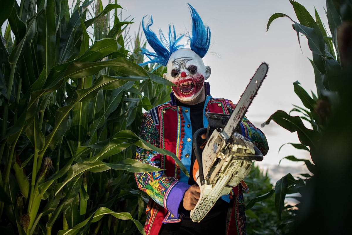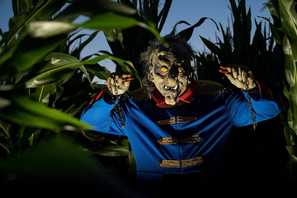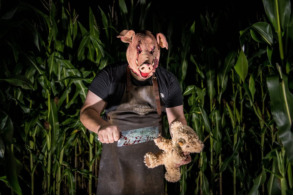Wie lukt het om in deze freakshow de uitgang te vinden, voordat het maïs en de achtergebleven bezoekers worden gehakseld tot veevoer?