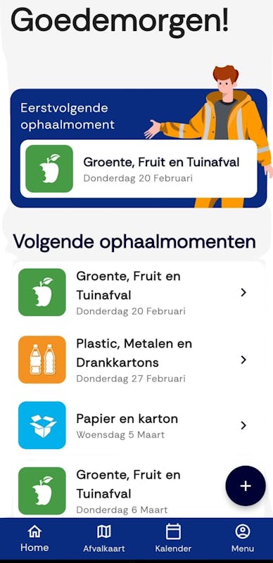 Vanaf 1 maart ziet de Afvalwijzer app er anders uit. De app is moderner en makkelijk te gebruiken. De Afvalkalender op maat blijft zoals je gewend bent. De informatie over afval scheiden is snel te vinden als je over het scherm scrollt. Je hoeft hier geen nieuwe app voor te downloaden. De app wordt (automatisch) vernieuwd in de app-store.
