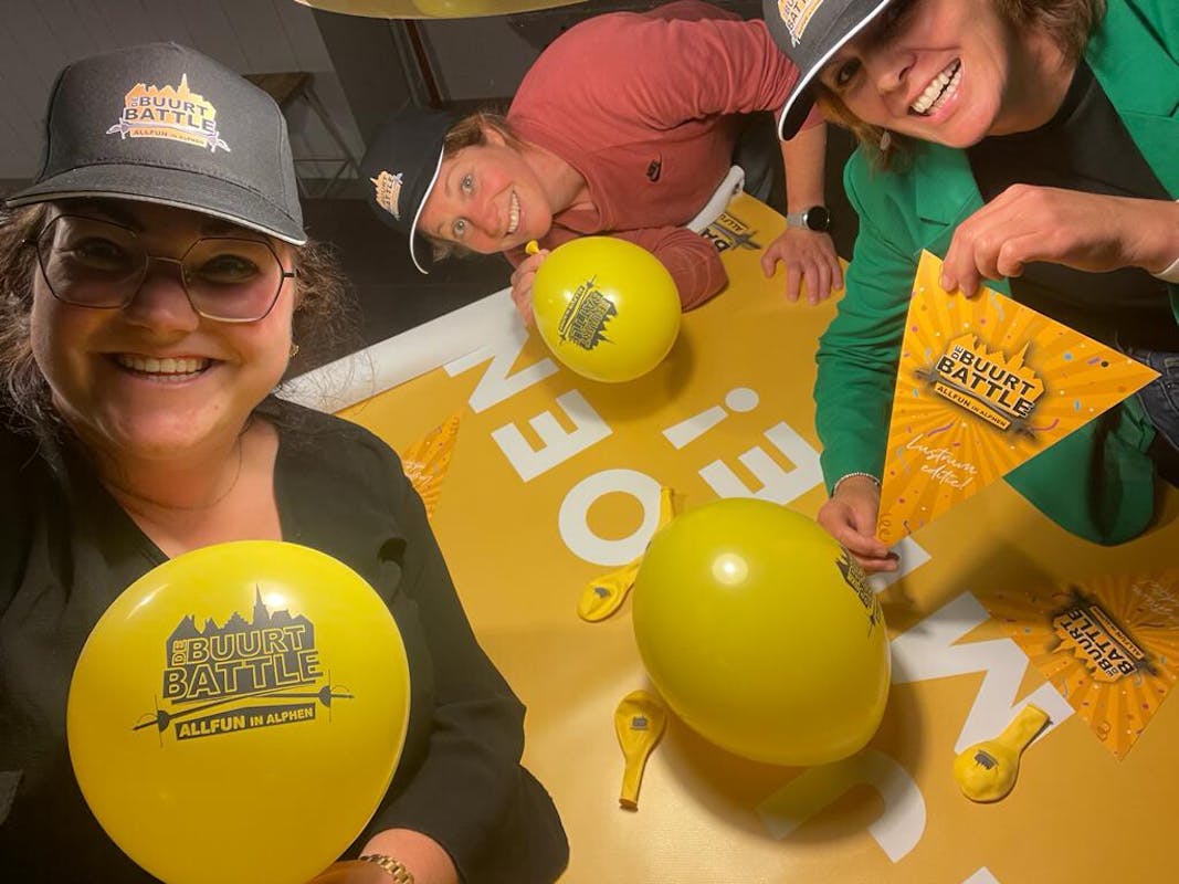 Echter, het hoofddoel van Buurt Battle Allfun is om alle Alphenaren een fantastische dag te bezorgen samen met hun buurtgenoten. Deze activiteit is bij uitstek geschikt om (nieuwe) buurtbewoners beter te leren kennen. De eerste en enige regel in ons reglement is dan ook: maak vooral veel plezier! Het doet ons als organisatie dan ook erg goed dat we Alphen langzaam geel zien kleuren met de slingers, ballonnen en zeiltjes.