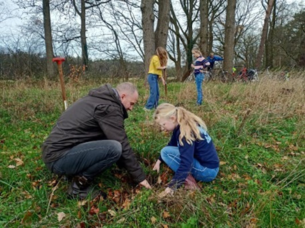 Wethouder Ton Berben was aanwezig bij de start van deze plantdag. De gemeente zorgde voor een warm drankje en iets lekkers. Na afloop kregen de kinderen een vogelhuisje met een pot vogelpindakaas. Hiermee helpen zij de vogels de winter door.