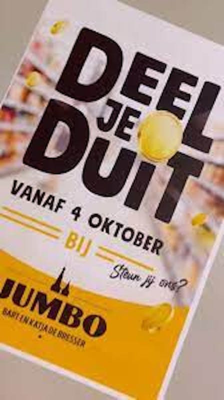 Dus mocht u boodschappen doen bij De Jumbo, doe dan de duit in het juiste bakje.