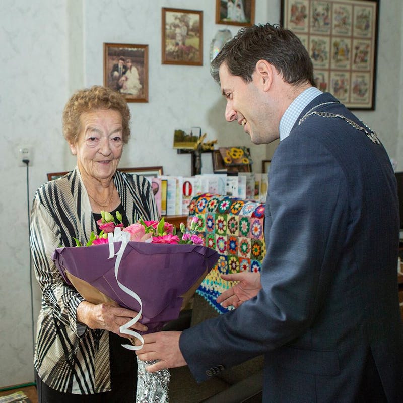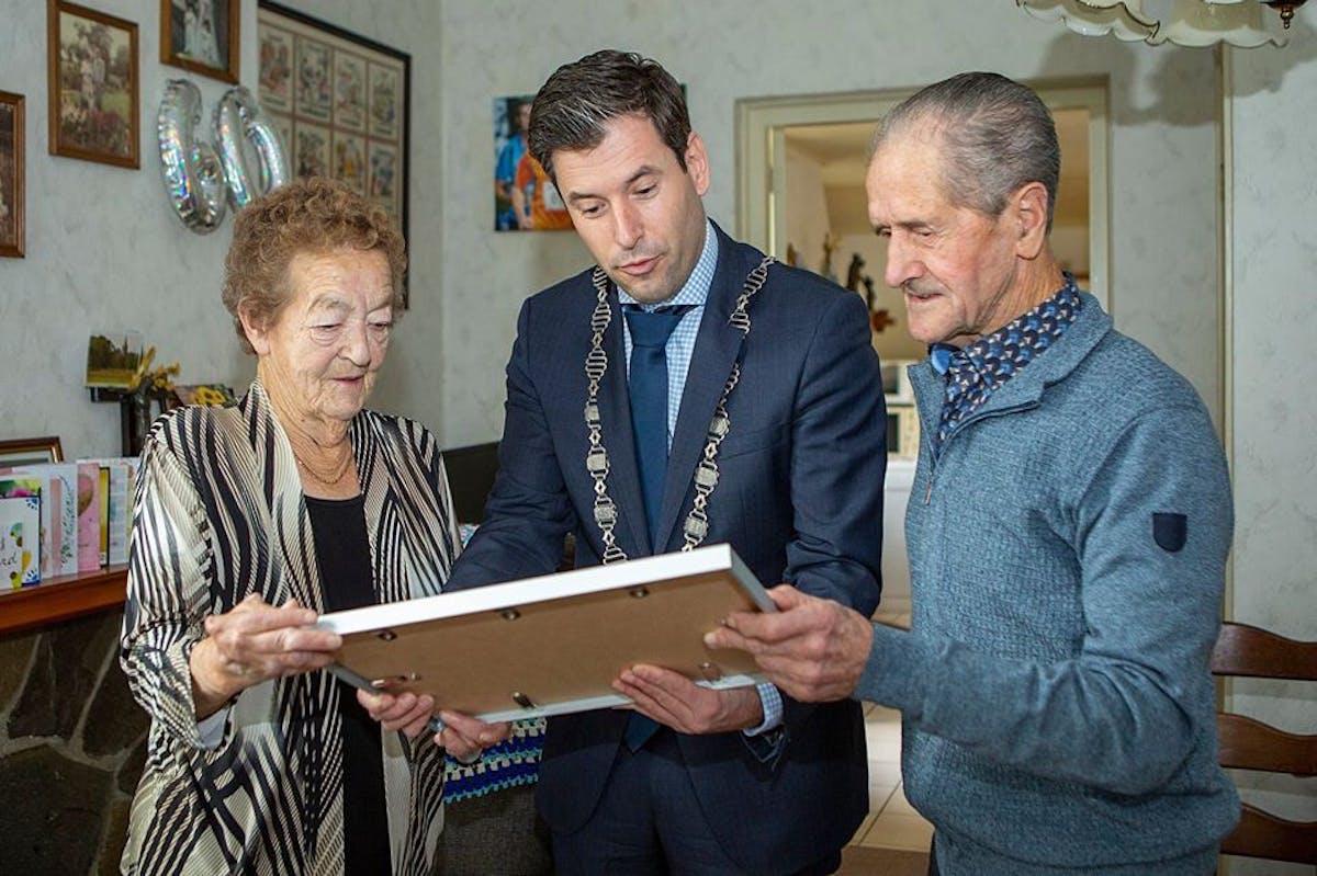 Burgemeester Joerie Minses bracht op woensdag 6 november een bezoek aan het diamanten bruidspaar Jan en Nelly Olieslagers-van Boxel uit Chaam. Zij waren op zondag 27 oktober 60 jaar getrouwd. De burgemeester had een ingelijst afschrift van de huwelijksakte, een bos bloemen en een mooi glasobject voor het bruidspaar meegenomen.