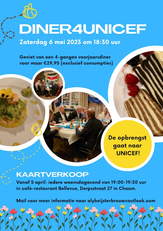 Woensdag 5 april start de verkoop van kaarten voor het diner4UNICEF.