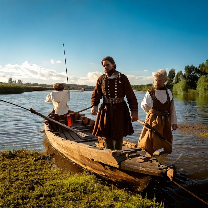 Aan den bovenloop der ‘Maai Beeck’ krege de Germaansche stamme der Chamaven onenigheyt met eene verwante stam der Kanninefaten. Na den verlore slag by het ‘Teskesbos’ trokke de Chamaven weg en voere op elf houte vlotte over den ‘Roode Beeck’ om zich te vestige tussche de ‘Galdersche Mere’ en de’ Krabbe Bossche’.