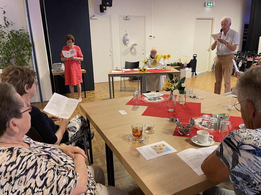 Na het openingswoordje van voorzitter Marcelle Schram werd een korte, mooie gebedsdienst gehouden met diaken Fennema als voorganger. Er waren inspirerende teksten en de liederen werden goed meegezongen. De dienst werd afgesloten met het opsteken van een kaarsje voor alle overleden gasten van het voorbije jaar.