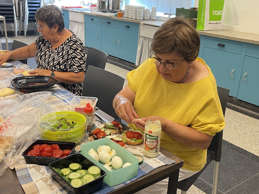 Daarna was het tijd voor de lunch, klaargemaakt en geserveerd door de vrijwilligers van de afdeling. Men had de keuze uit tomaten- of groentesoep, een keur aan heerlijk belegde broodjes en verschillende koffiekoeken. Het was een echt feestmaal.