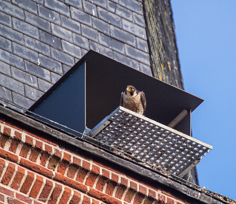 Hier enkele foto's van een ouder slechtvalk die met grote zorgen haar of zijn jongen voert, de foto genomen vanaf het evenemententerrein in Alphen NB, zo een grote afstand omdat ik dan meer zie in de nestkast en ook de ouder valken en jonge beter zie .