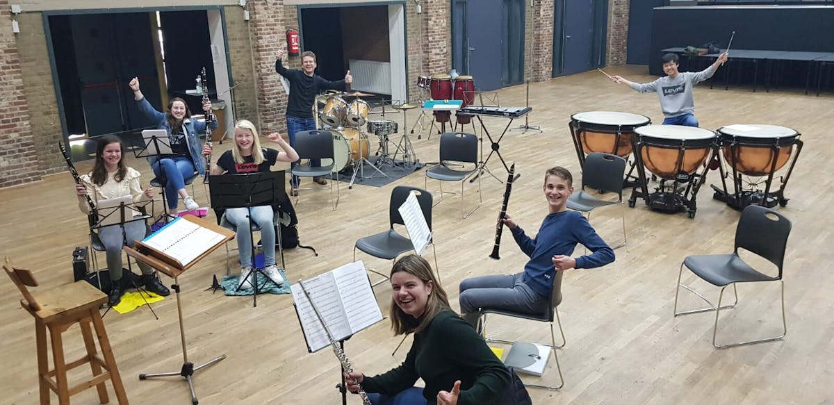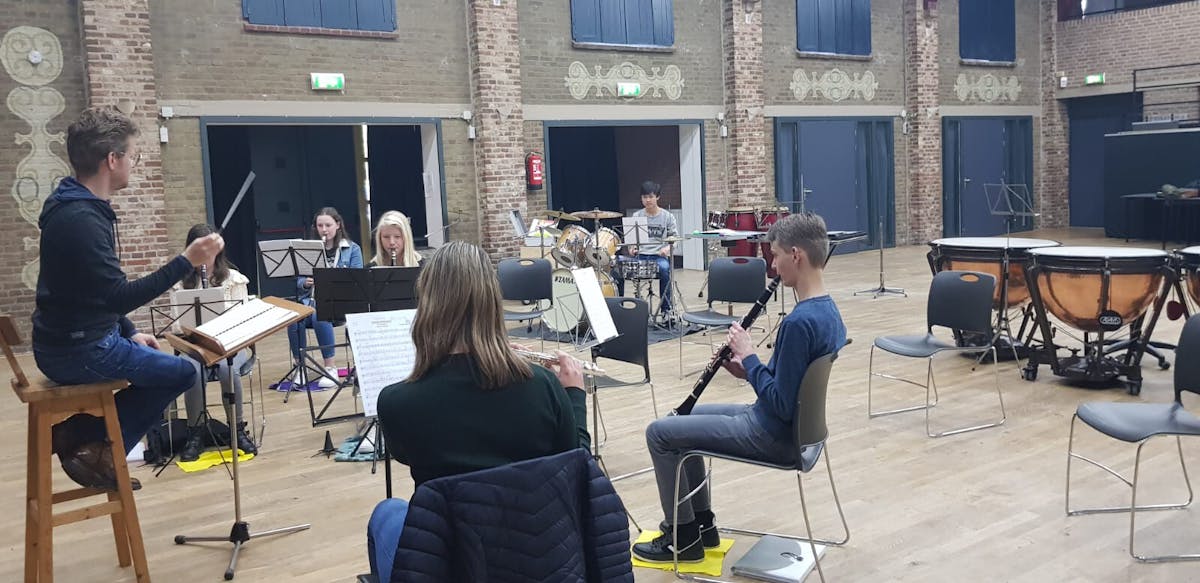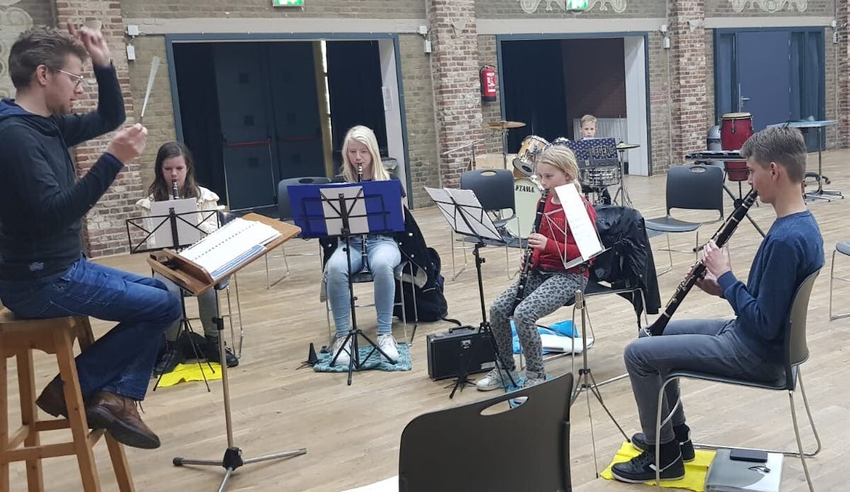 De leerlingen in Bandtime o.l.v. Djuri speelden vrijdag 21 mei hun EERSTE repetitie in 2021 in coronatijd onder coronacondities! Even later zette Djuri het opleidingsorkest in gang bij hun eerste repetitie. Nog niet compleet want…….. voorlopig alleen muzikanten t/m 17 jaar. Hopelijk binnen korte tijd allemaal weer! Maar …… we zijn begonnen!