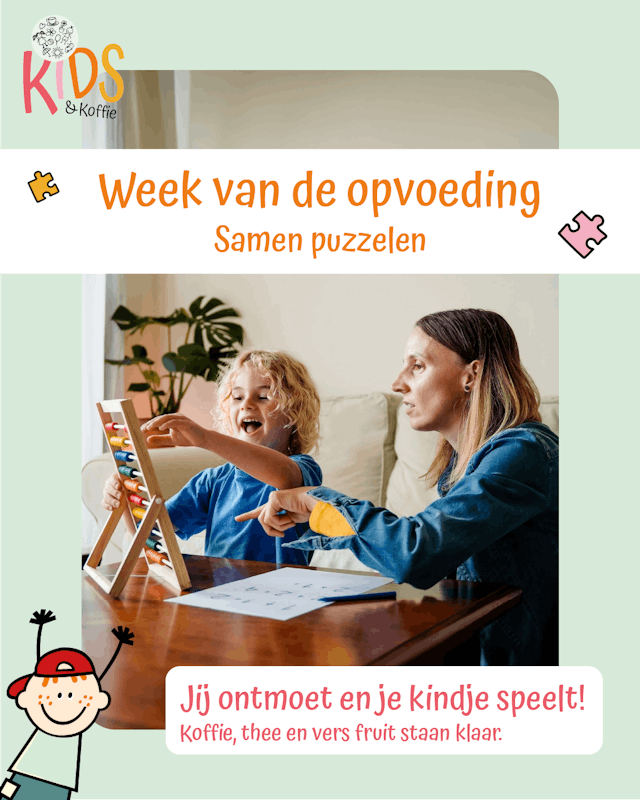 Bij Kids&Koffie komen we samen om te spelen, ontmoeten en ervaringen met elkaar te delen. Van 13 t/m 19 oktober is het Week van de opvoeding.