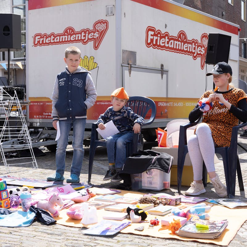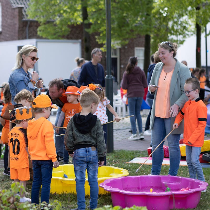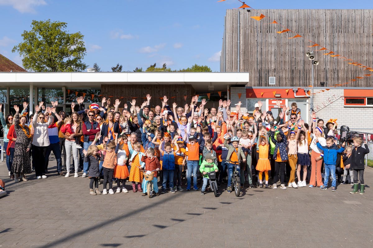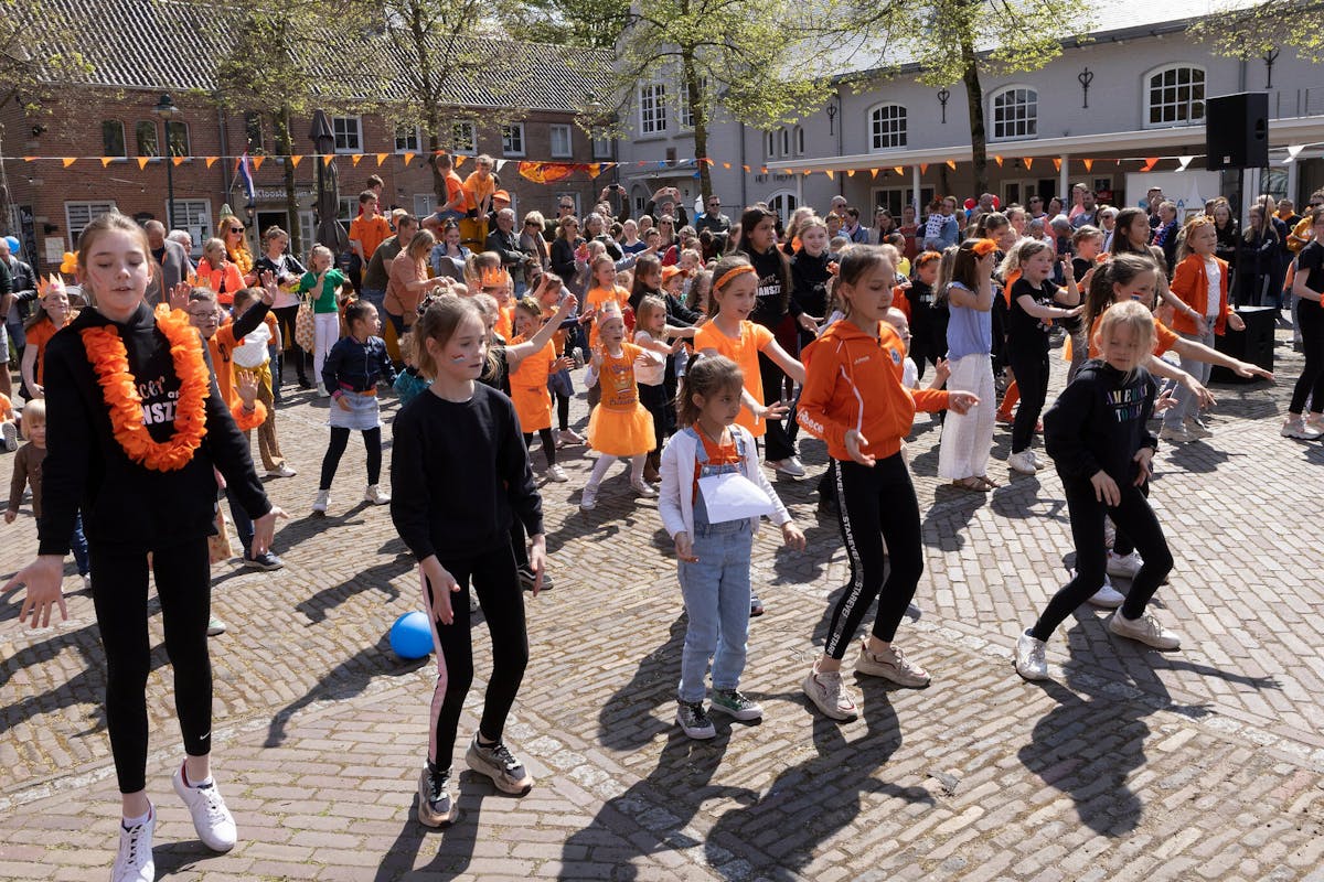 Koningsdag in Alphen-Chaam, Burgemeester Jan Brenninkmeijer hijst vlag in Galder. In Alphen kleurde het Binkplein oranje en door de straten van Chaam was het de mini Acht van Chaam.
