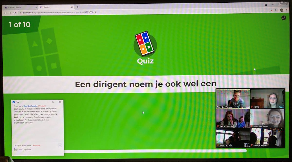 Een geslaagde online activiteit voor de jeugd van V.&.V. verzorgt door de werkgroep opleiding. De “V.&.V. ’s dirigeerworkshop” werd goed en leuk verzorgd door dirigent Djuri den Tuinder. En voor zover wij het kunnen beoordelen zitten er tussen de muzikanten wel een paar hulpdirigenten voor de toekomst! De workshop werd afgesloten met een “Weet je het nog” quiz! Dank je wel Djuri voor je extra inzet en nu hopen we elkaar allemaal snel weer te ontmoeten bij de eerste repetitie van 2021!