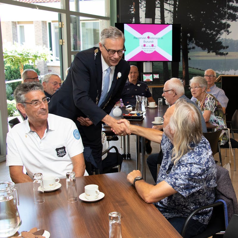 Na het welkomstwoord door de burgemeester luisterden zij naar Wiet van Banning die vertelde over zijn missies naar Burundi. Het Veteraneninstituut was aanwezig met materiaal en natuurlijk was er ruimte om verhalen uit te wisselen en bij te praten, tijdens de lunch of daarna.