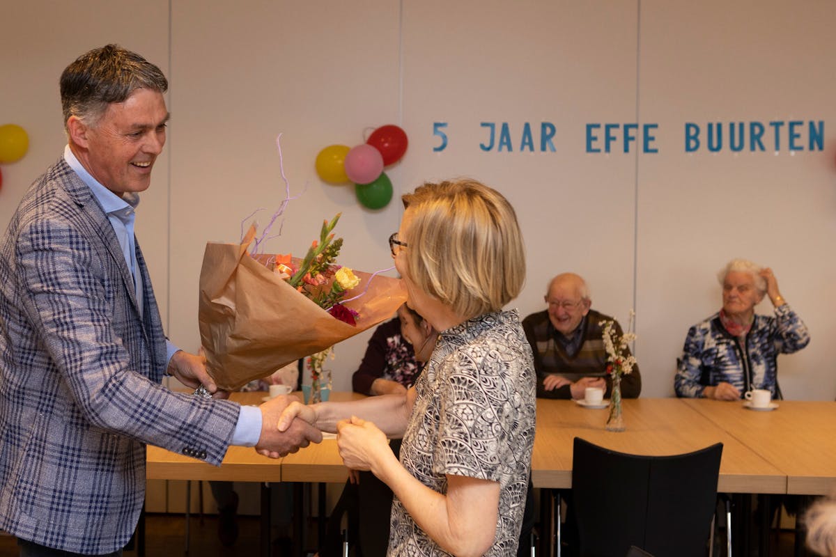 Op 6 april bezocht wethouder Ton Braspenning Effe Buurten in Alphen en in Chaam. Hij was daar vanwege het 5-jarig bestaan van Effe Buurten.