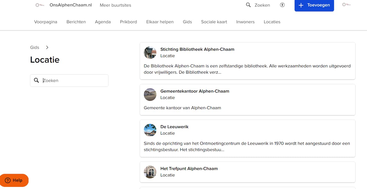 Op 'OnsAlphenChaam' zie je bij de menupagina ‘Locaties’ en/of bij ‘Gids’ onder de categorie ‘Locatie’ een handig overzicht met bedrijven en organisaties die hebben aangegeven een locatie te zijn. Lekker handig!