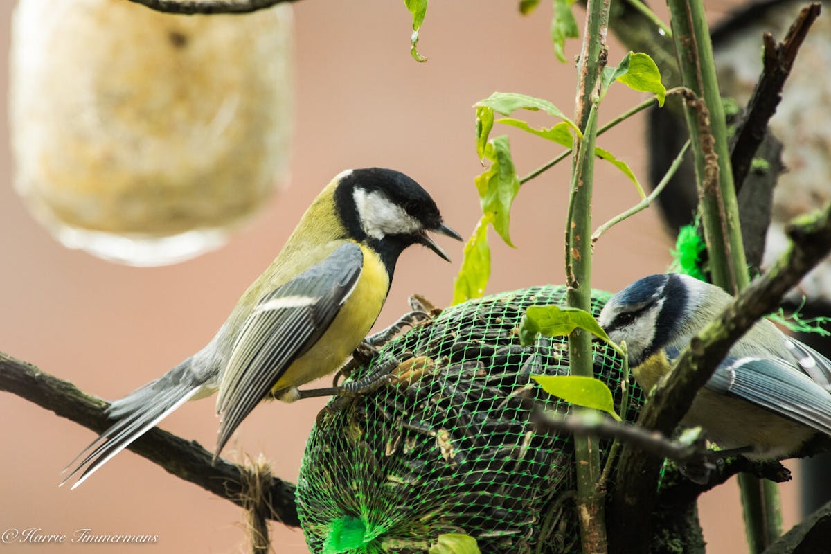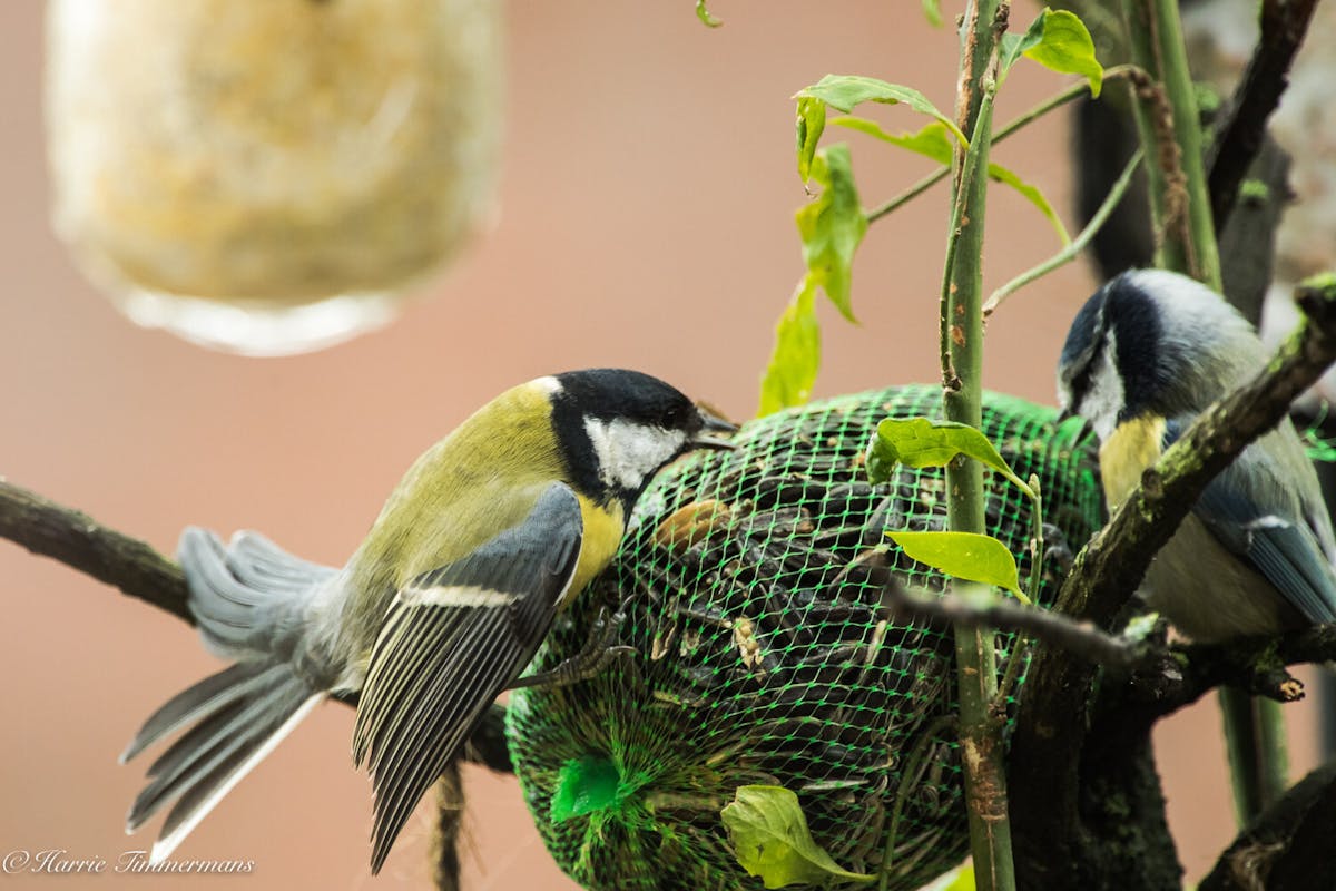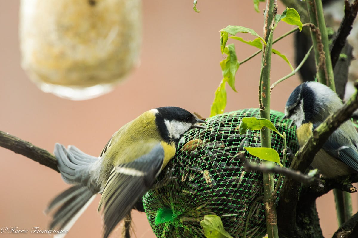 Het was hier een komen en gaan van koolmezen Pimpelmezen Mussen , eigenlijk verschillende soorten mooie vogeltjes. Maar ze waren het niet altijd met elkaar eens ! En dat op Dierendag he.