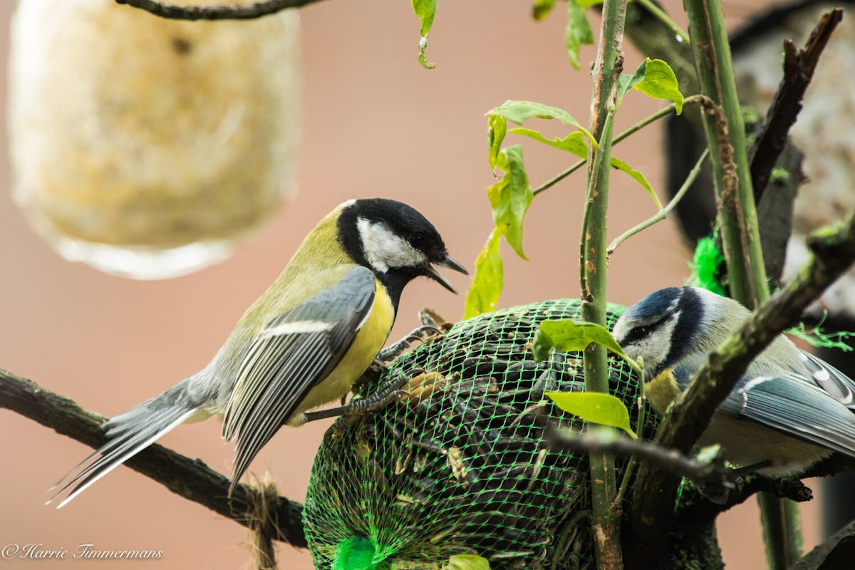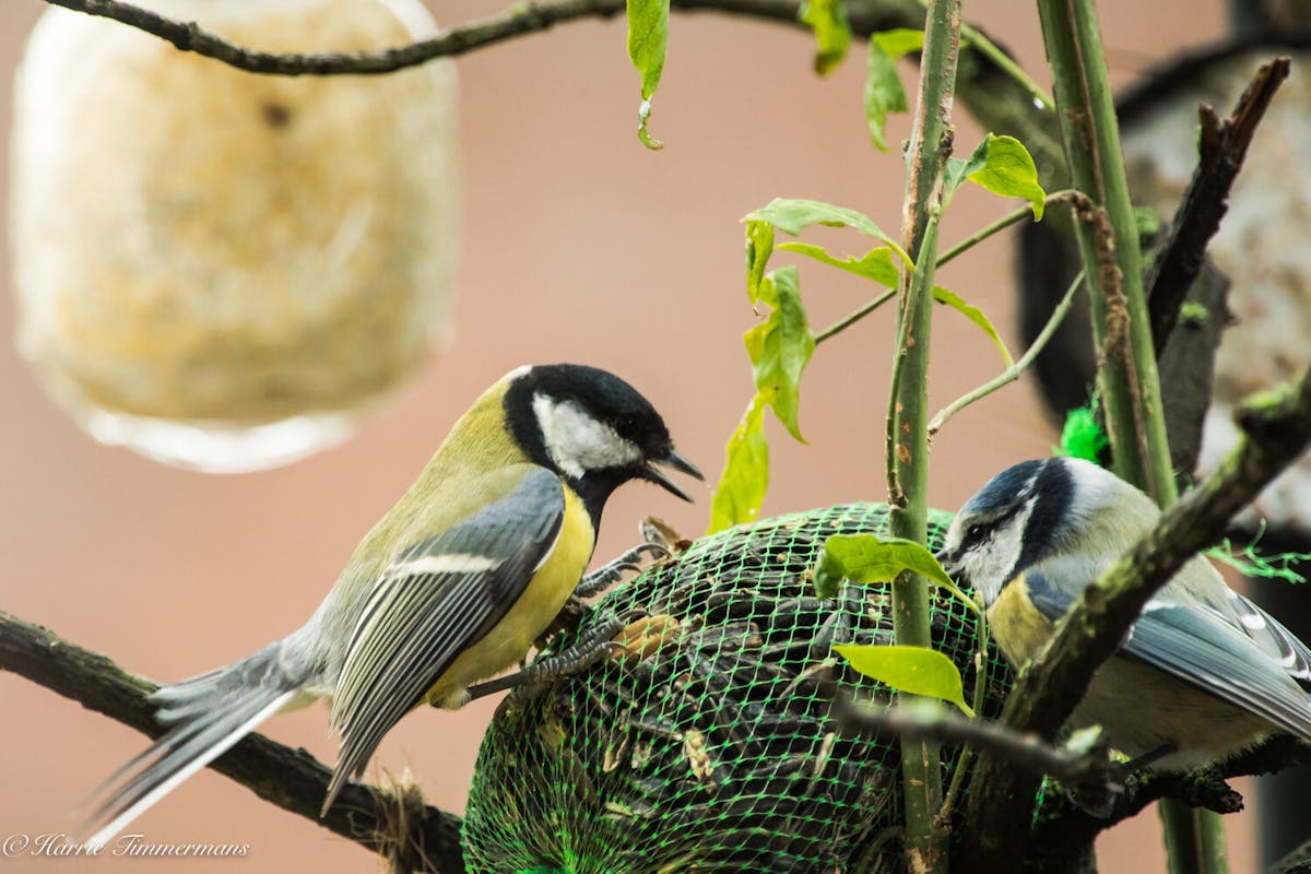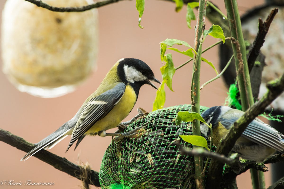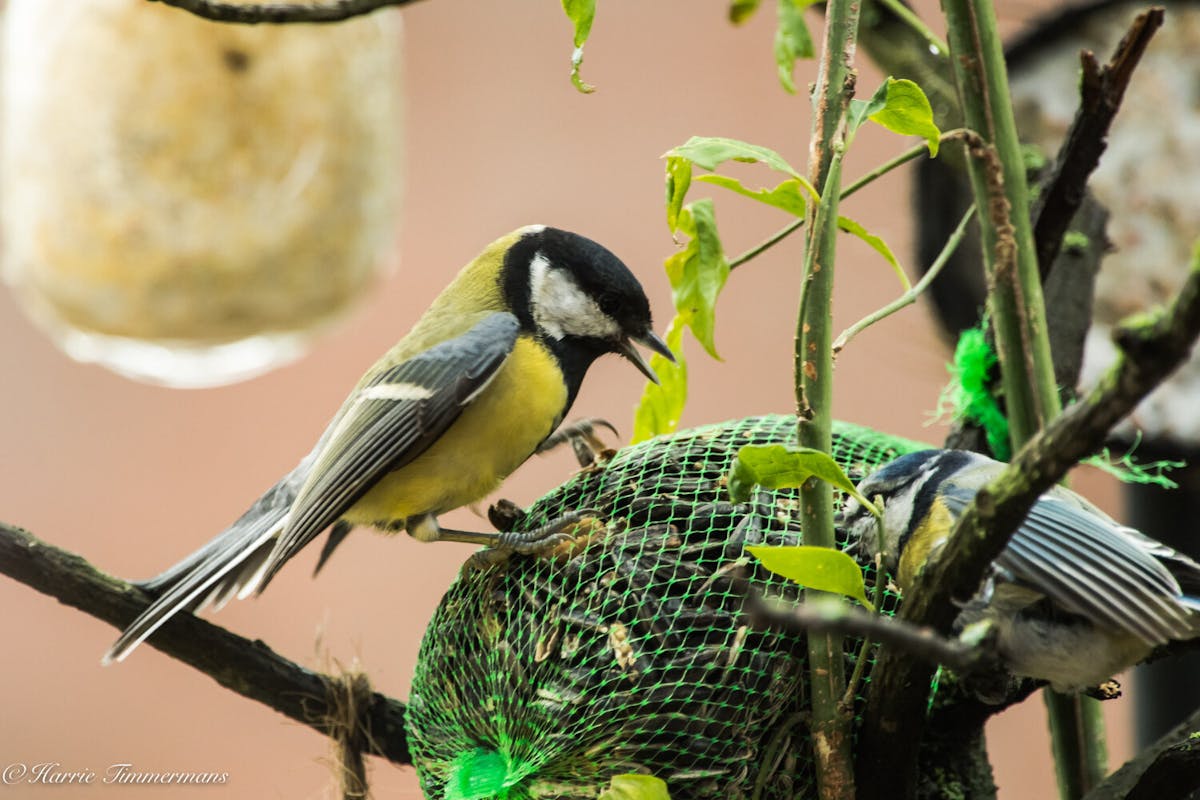 Het was hier een komen en gaan van koolmezen Pimpelmezen Mussen , eigenlijk verschillende soorten mooie vogeltjes. Maar ze waren het niet altijd met elkaar eens ! En dat op Dierendag he.