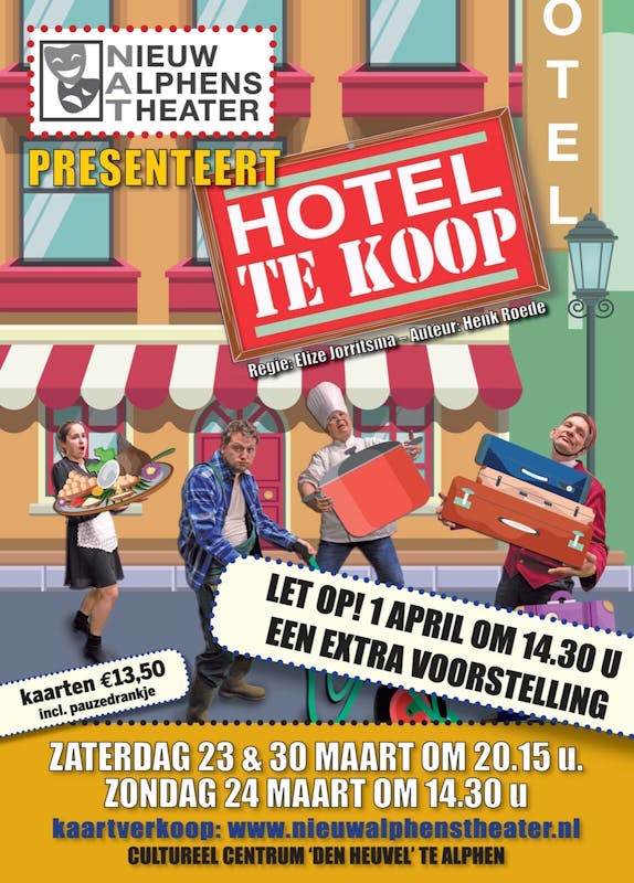 Ook dit jaar heeft het Nieuw Alphens Theater weer een heerlijke toneelvoorstelling: “Hotel te Koop”.