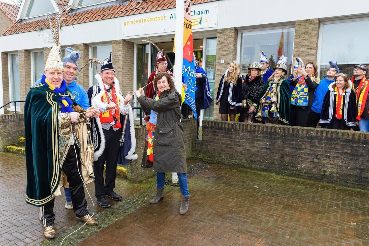 Carnavalsverenigingen SCC de Bonenpikkers , @jaan_de_maerkrat, @struivenbakkers verzamelden zich zaterdag op het gemeentekantoor om samen met burgemeester Lieke Schuitmaker de carnavalsvlaggen te hijsen.