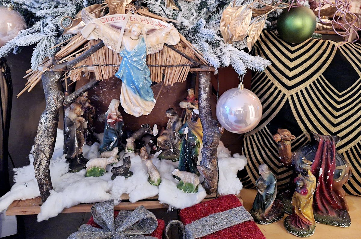 Op de dag na Sinterklaas haalde pa onze kerststal en de doos met beeldjes van de zolder. “Irst mot ommes Sientereklaos veurbij zen”, leerde ma ons. Het was elk jaar een spannend weerzien met Jozef, Maria, de kerstengel en het kindje Jezus. Het leek alsof er oude bekenden op bezoek kwamen. Ook de herders en de drie koningen namen jaarlijks hun intrek in onze kerststal. Als ma niet keek speelden we stiekem ‘boerderijtje’ met de os, de ezel, de schapen en de herdershond.