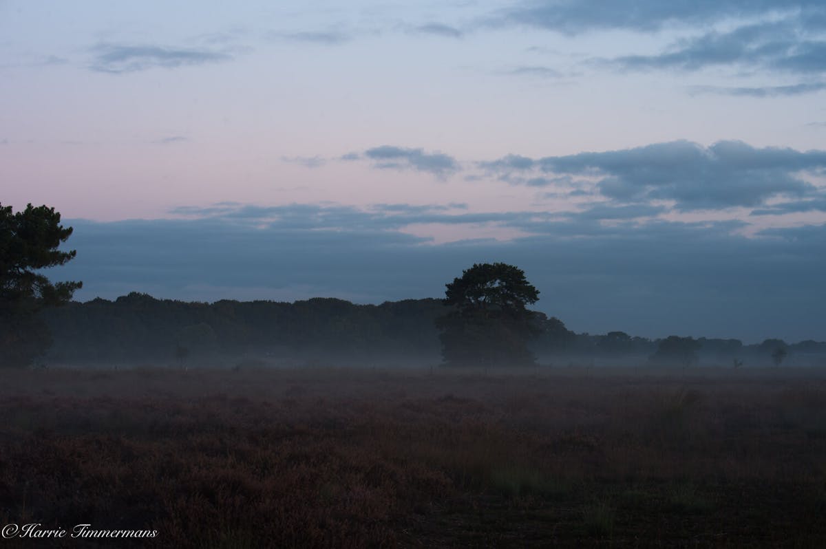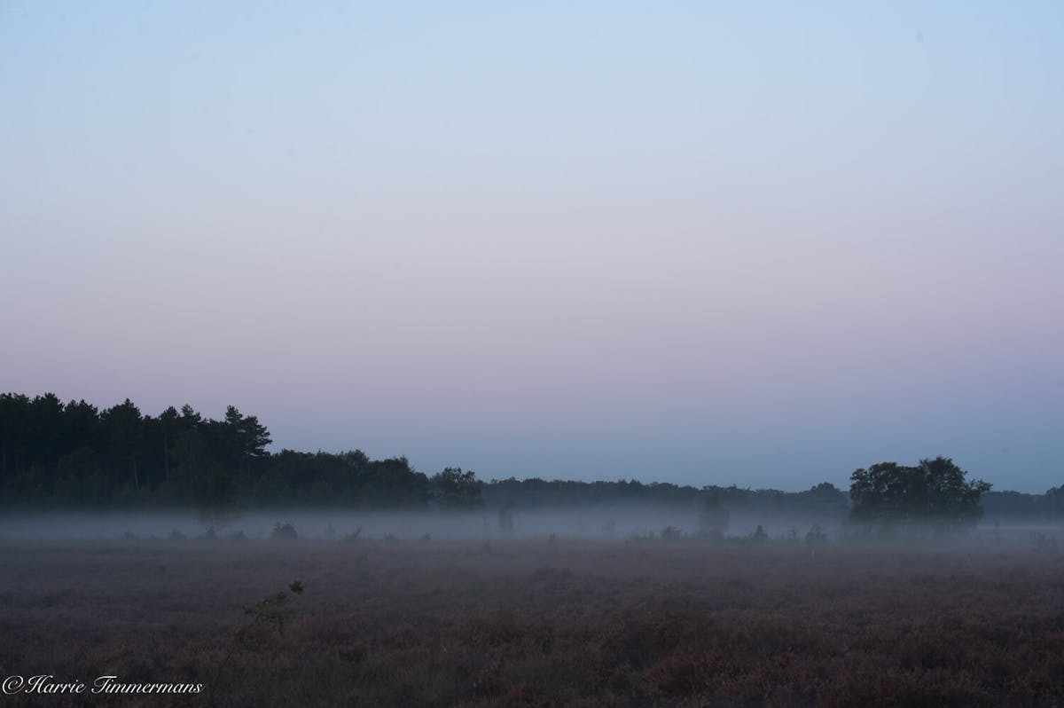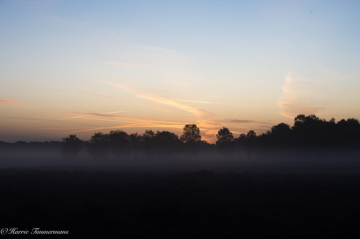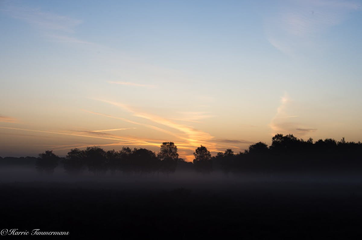 S'morgens vroeg op de rechte Heide de opkomende zon gefotografeerd.