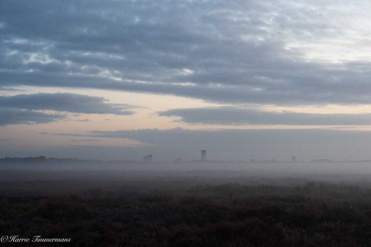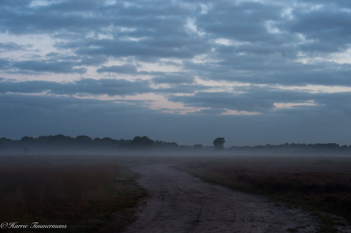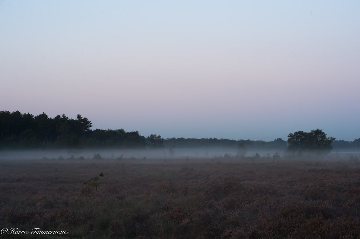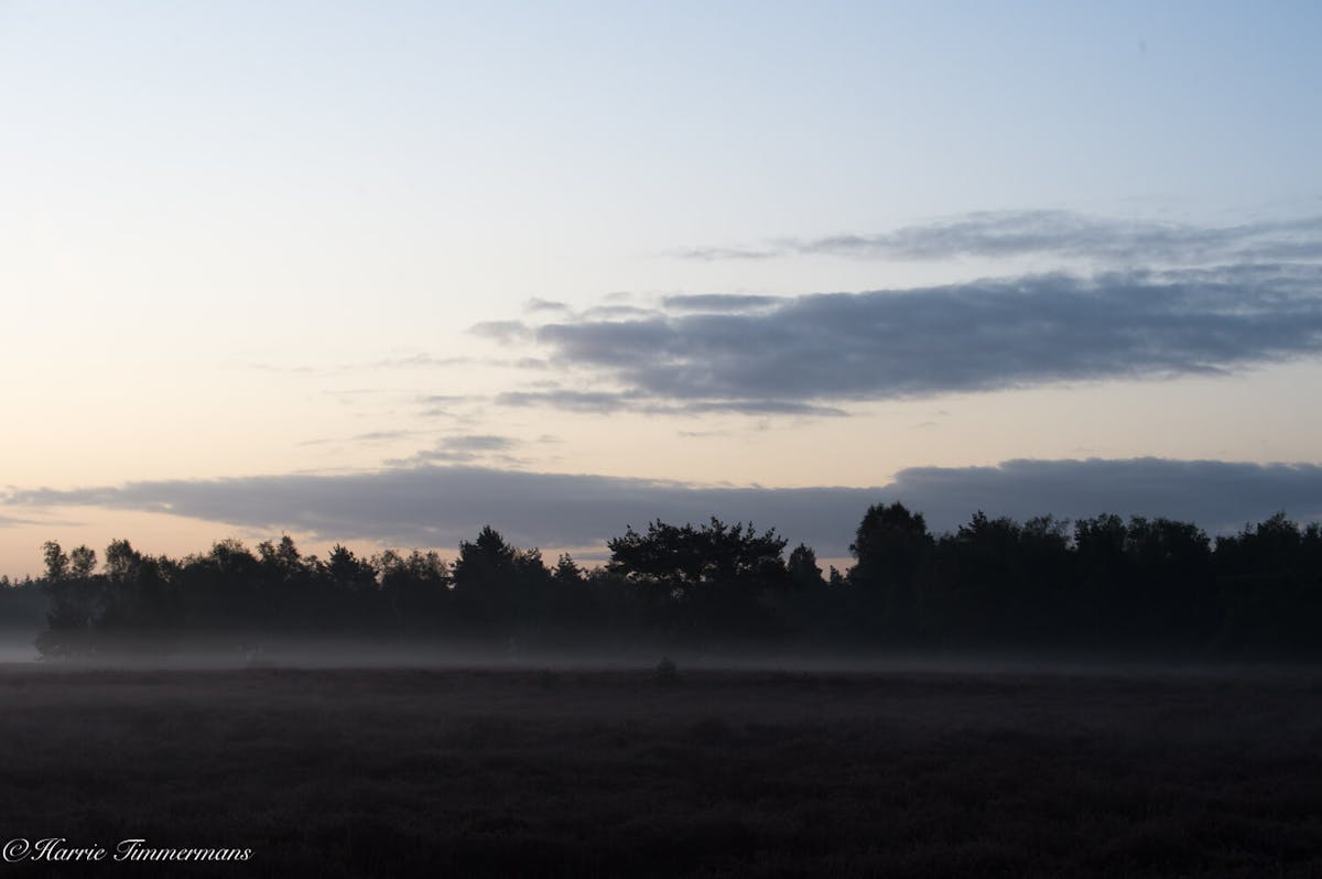 S'morgens vroeg op de rechte Heide de opkomende zon gefotografeerd.