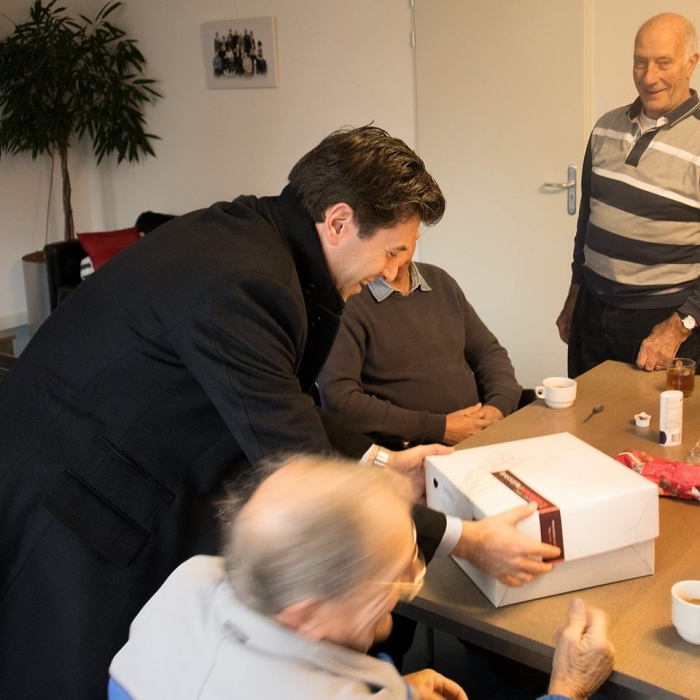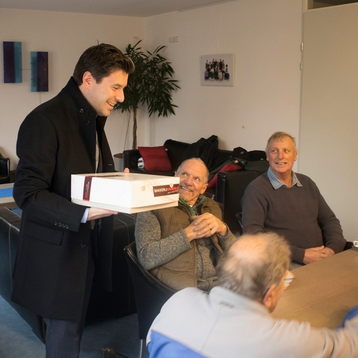 Op de Dag van de Vrijwilliger heeft burgemeester Minses een taart gebracht naar de vrijwilligers van Woonvoorziening De Schans in Chaam. Deze vrijwilligers verzorgen wekelijks de buitenruimte, de dierenverblijven en de (moes)tuin.