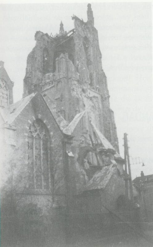 Zo werd op 7 oktober ’s middags omstreeks 14.45 uur de Willibrorduskerk beschoten met het gevolg dat de torenspits kantelde en op het middenschip van de kerk terecht kwam. Ook de wijzerplaten, stangen en tandwielen van de klok donderden naar beneden. Gelukkig overleefde het uurwerk dat een stuk lager stond de beschietingen, echter wel met de nodige littekens.