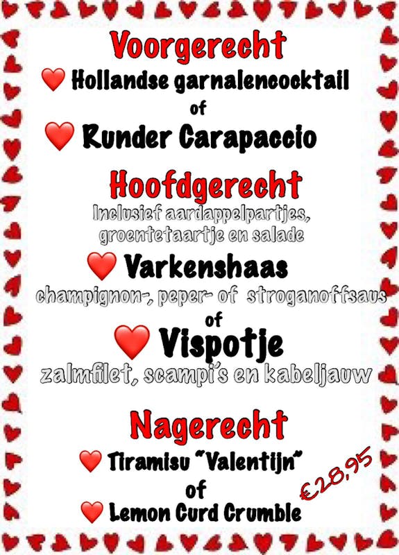 Of geniet samen van een romantisch diner. € 28,95 p.p.