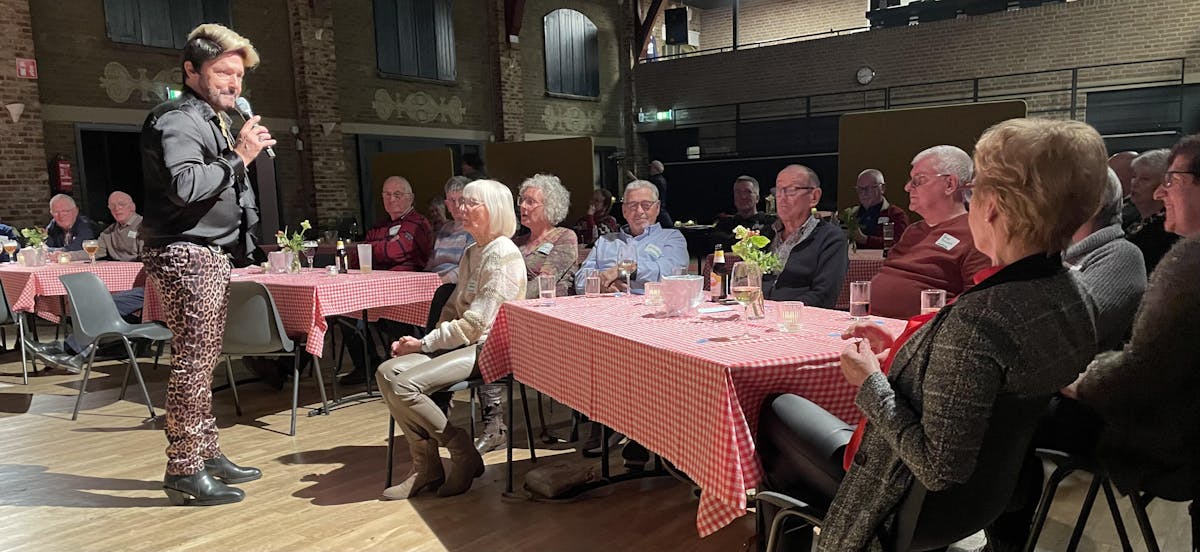 Het tweede deel van de avond bestond uit entertainment. Een aantal dames kregen door Roland een prachtig kapsel aangemeten gekregen en Hans zorgde voor de nodige zang en gezellige kletspraat. Het was een gezellige boel. Er is meegezongen, de polonaise werd gelopen en er zijn grappige prijzen gewonnen bij de muziekbingo.