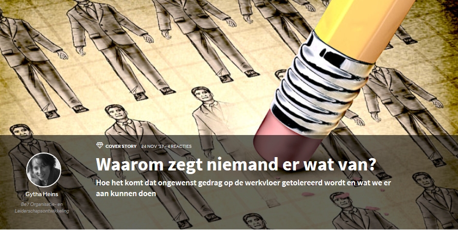Afgelopen week heb ik een link naar een artikel op Linkedin geplaatst met een verwijzing naar YibYib, wat ik bij bedrijven implementeer en begeleid. Het artikel heet “Waarom zegt niemand er iets van” en werd binnen 1 dag al door meer dan 1000 mensen gelezen!