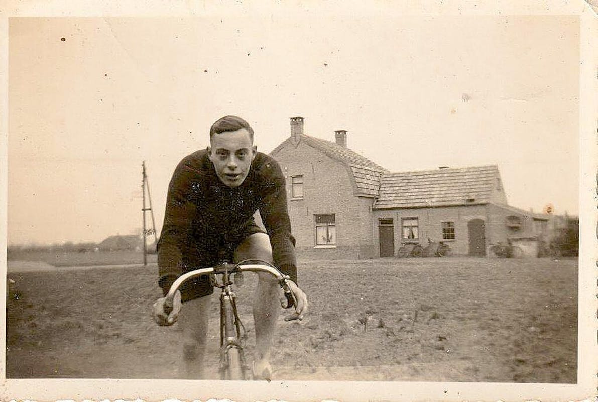 Wij gaan nu verder met het plaatsen van een nieuwe afbeelding van een man op zijn racefiets. In de verre omtrek was deze coureur bekend omdat hij zeer vele wedstrijden wist te winnen en ook op de wielerpiste stond hij zij zijn mannetje, natuurlijk ook op de wielerbaan in Alphen, die toen gelegen was naast café (Frits en Dien) op Boshoven. Natuurlijk moest deze renner ook trainen. Op deze foto maakt hij zijn trainingskilometers. Maar is er ook iemand die ons kan vertellen waar (welk huis en in welke buurt ) deze foto is gemaakt? Wie woonde daar vroeger of misschien nog heden ten dage? Wij zijn benieuwd wie ons meer kan vertellen en natuurlijk verwachten wij ook de naam van deze sportieveling.