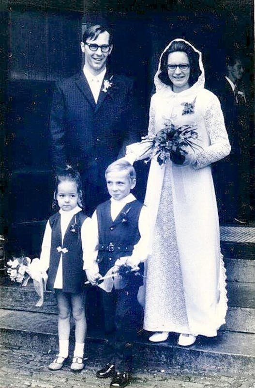 Wij gaan nu verder met het plaatsen van een nieuwe foto, al kunnen wij niet spreken van een nieuwe foto, want deze prent is gemaakt 50 jaar geleden dus dat is nu een Gouden bruiloft! Wij willen dit bruidspaar bij deze van Harte feliciteren! Maar wie zijn deze twee? En weet ook iemand te vertellen wie het bruidsmeisje en de bruidsjonker zijn? Zoals gewoonlijk verwachten wij natuurlijk weer van jullie als lezers van deze rubriek, dat jullie ons precies kunnen vertellen wie toen in het huwelijk is getreden.