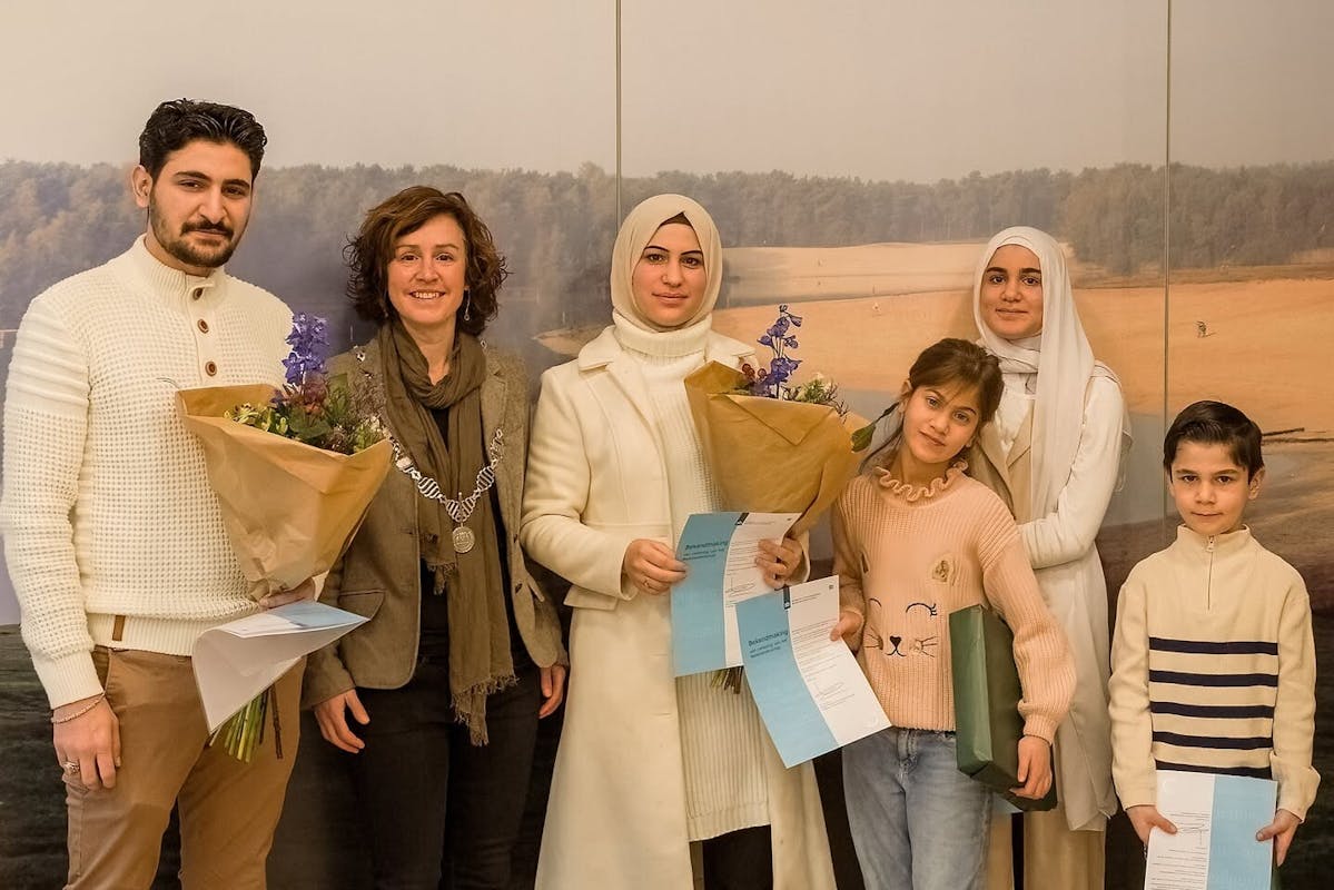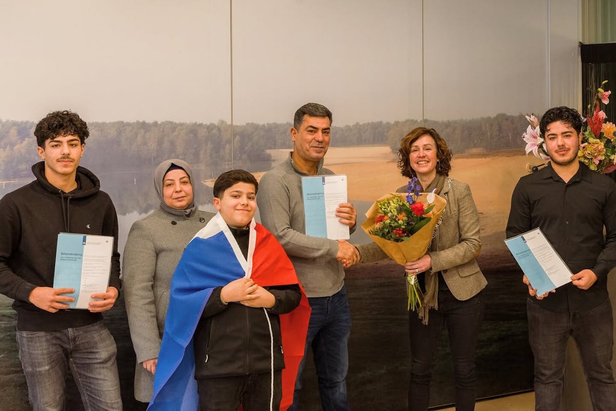Tijdens een feestelijke naturalisatieceremonie werd donderdagochtend 16 januari aan de gezinnen Al-Ali, Dasuqi, Abdaal en Aytaş en aan de heer Dasouki de Nederlandse nationaliteit toegekend. Zij legden de verklaring van verbondenheid af. Met de verklaring verklaarden zij de vrijheden en rechten die bij het Nederlanderschap horen te respecteren, en de plichten te vervullen. Burgemeester Lieke Schuitmaker nam de verklaring bij de gezinnen en de heer Dasouki af in het bijzijn van enkele familieleden. Van harte gefeliciteerd allen en veel geluk gewenst!