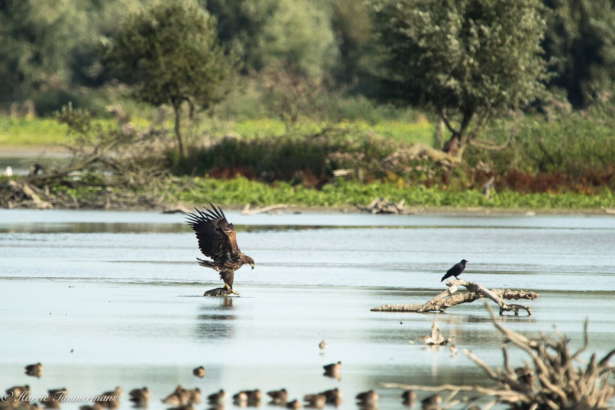 En deze Zeearend had 'n vis te pakken maar kon 'm heelaas nie meenemen om op te peuzelen volgens mij.