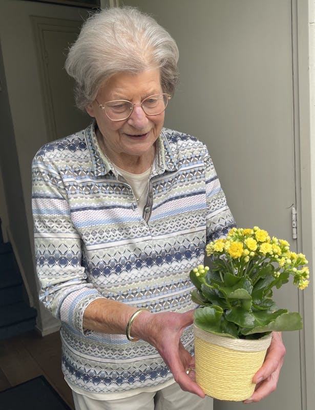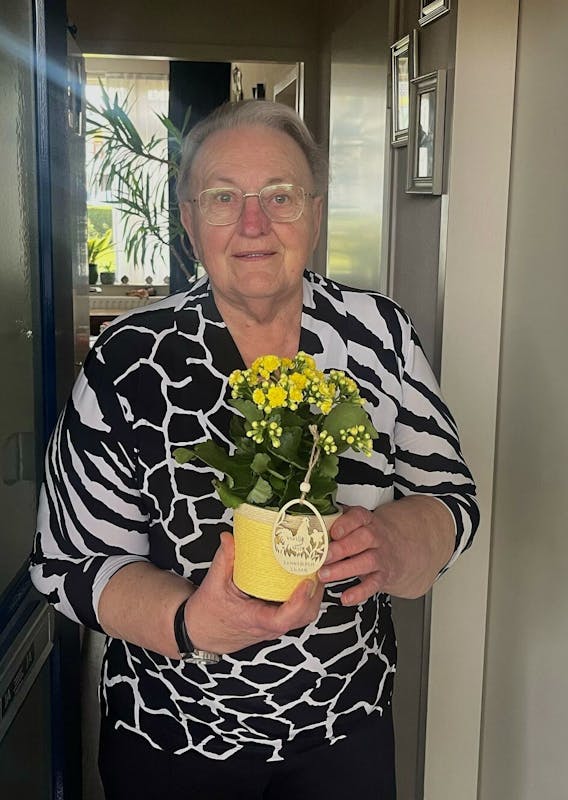 Er worden door de Zonnebloem niet alleen leuke activiteiten georganiseerd, ook bezorgen onze vrijwilligers af en toe een geschenkje aan huis. Zo heeft onze activiteitencommissie dit keer bedacht dat de Pasen voor onze deelnemers extra feestelijk moet worden met wat aandacht en een fleurig geschenk. En wie is er nu niet blij met zo’n royaal bloeiend plantje in de originele Paaskleuren.