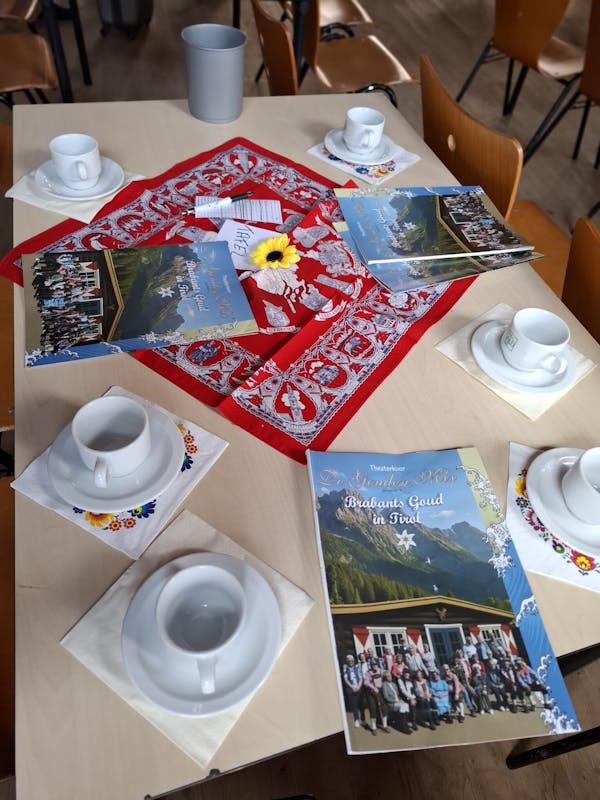 Jaarlijks organiseren de Zonnebloemafdelingen Baarle-Nassau, Chaam, Alphen en Riel een gezamenlijk uitje. Dit jaar was het de beurt aan de Zonnebloem Baarle-Nassau en zij hebben kans gezien om de zeer populaire Tilburgse Theatermuziekgroep De Gouden Mix te boeken, een voor velen bekend gezelschap, dat garant staat voor een hilarische middag met hun nieuwste opvoering “Brabants Goud in Tirol”. In deze productie gebeurde er van alles en er was weer een gevarieerd liedjesprogramma verwerkt, dat als vanouds door het publiek kon worden meegezongen.