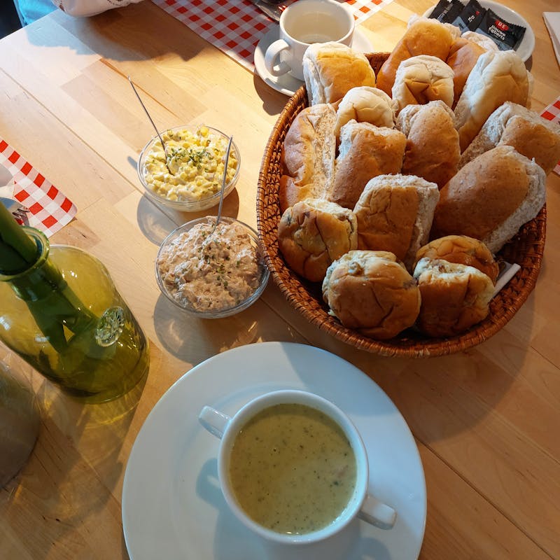 Dus iedereen kon weer lekker en gezellig smullen van kopje soep, broodjes salade en krentenbolletje!