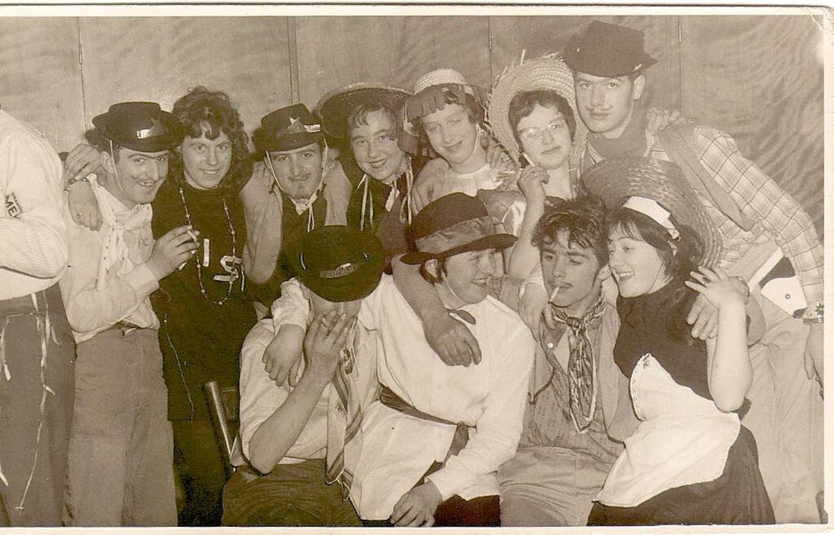 Wij werden hierop gewezen door de gezusters Broere die beide zelf ook op deze foto’s staan. Natuurlijk konden zij ook alle namen geven van deze carnaval feestelingen die toen 59 jaar jonger waren dan vandaag. Zij wisten zich ook nog goed te herinneren hoe er in die tijd carnaval werd gevierd en hoe gezellig dat het was in die jaren. Wij geven hierbij de namen van de personen op de foto staan welke wij nu nog één keer in het weekblad zetten. Bovenste rij v.l.n.r. Walter Wouters; Kitty Broere; Harrie Wouters; Hetty Broere; Fina Vermetten; Ria Vermetten en Jan Jansen. Zittend: Jan Aerts; Marianne Wouters; Henk Krijnen en Marianne Cornelissen.