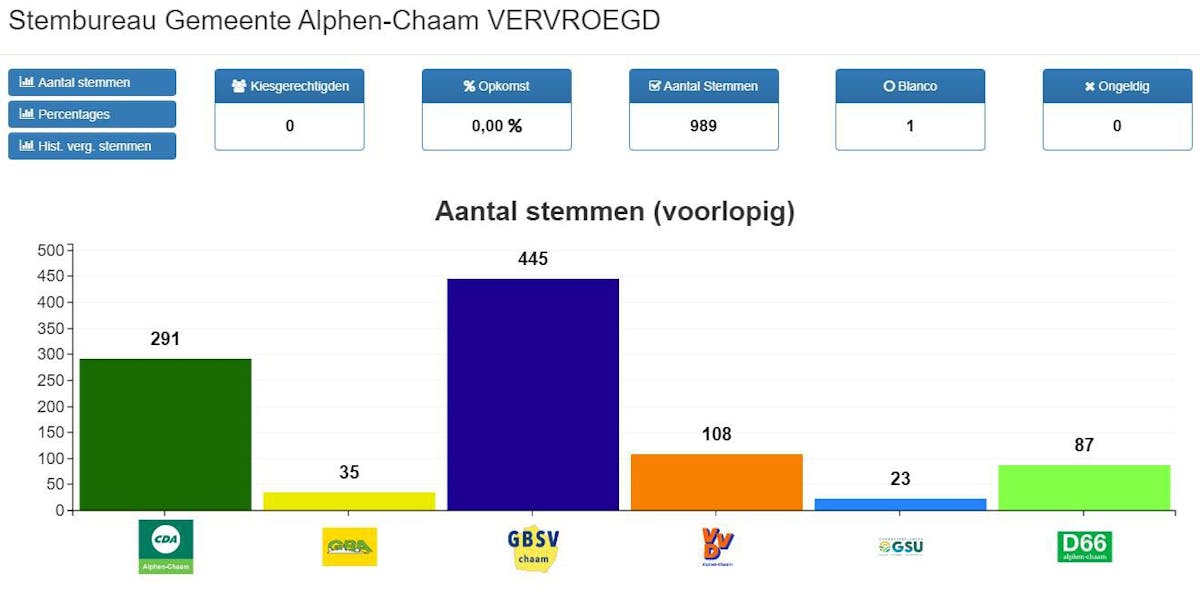 De voorlopige uitslag van het vervroegd stemmen op 14 en 15 maart is bekend.