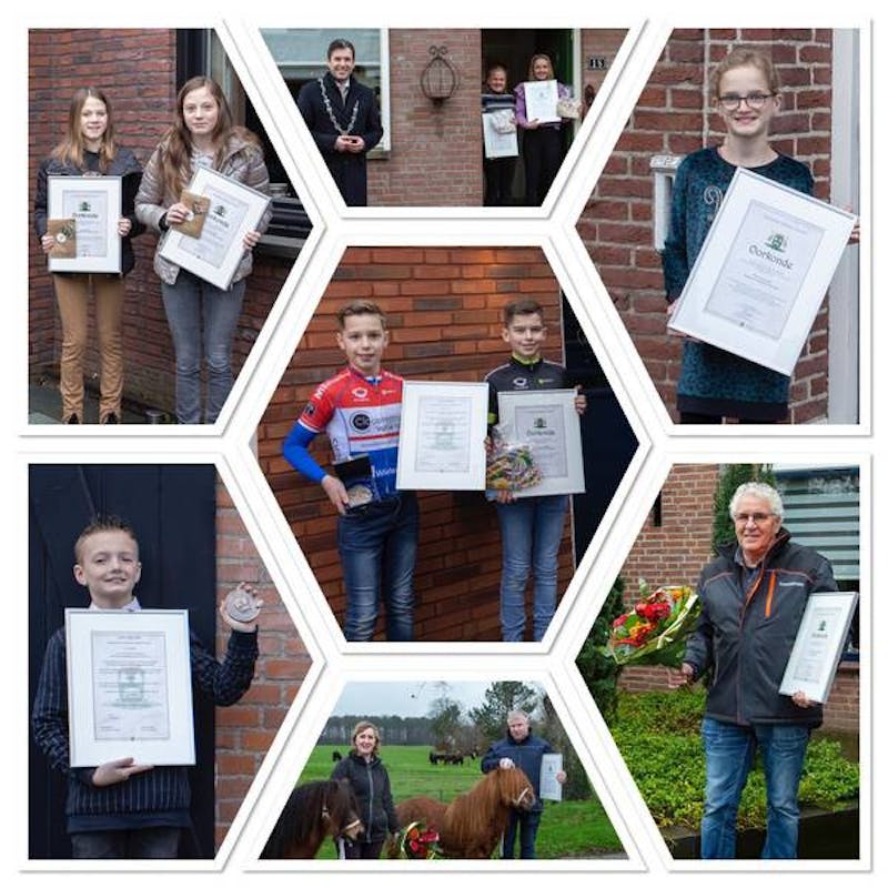 In het filmpje ziet u dat burgemeester Minses aan twee jonge inwoners van onze gemeente de Penning van Verdienste van de gemeente Alphen-Chaam uitreikt: aan Gijs van den Biggelaar uit Galder en aan Flynt Warmenhoven uit Alphen. Gijs werd Nederlands Kampioen Veldrijden bij de jeugd. Zijn broer Jop werd 2e in een andere leeftijdscategorie. Hij kreeg een mooie oorkonde.